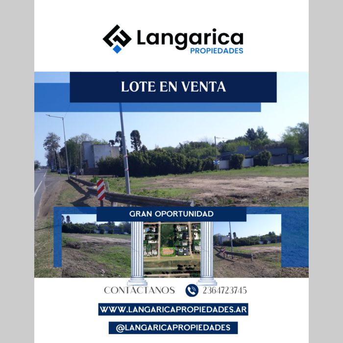 📍 Lote en Venta 📐 Medidas: 45 x 27,5 mts (1.237,5 m² totales) 🏡 Ideal para construir la casa de tus sueños 💼 Excelente opción para inversión o emprendimiento 🌳 Amplio espacio y gran versatilidad ✨ ¡No te pierdas esta oportunidad única! 📩 Consultanos para más información 📲 Langarica Propiedades