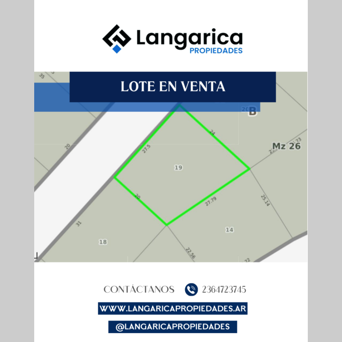 📍 Lote en Venta 📐 Medidas: 45 x 27,5 mts (1.237,5 m² totales) 🏡 Ideal para construir la casa de tus sueños 💼 Excelente opción para inversión o emprendimiento 🌳 Amplio espacio y gran versatilidad ✨ ¡No te pierdas esta oportunidad única! 📩 Consultanos para más información 📲 Langarica Propiedades